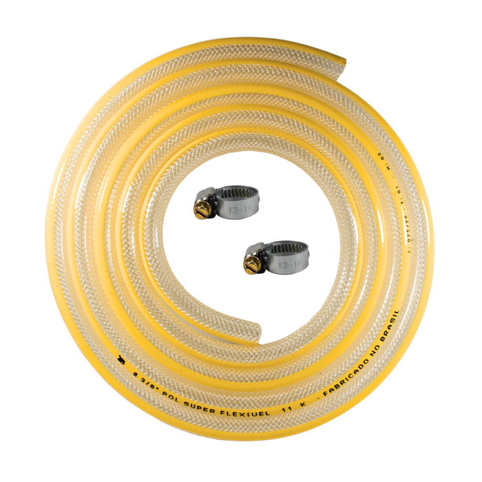 A mangueira multiuso é fabricada em PVC cristal amarelo com três camadas: Interna e a externa em PVC e a intermediária com reforço de fios de poliéster.