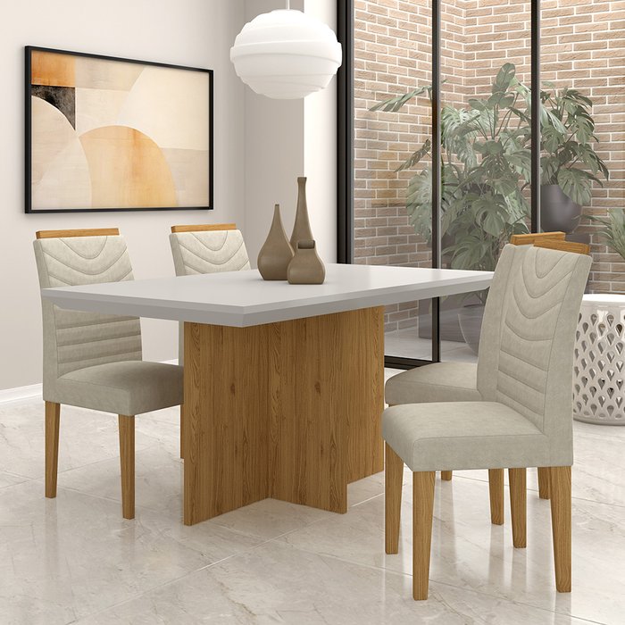 Mesa com 4 Cadeiras Duda 1,36 Cin/off White/bege - Móveis Arapongas Cinamomo/off White/bege 03 Cinamomo/off White/Suede bege