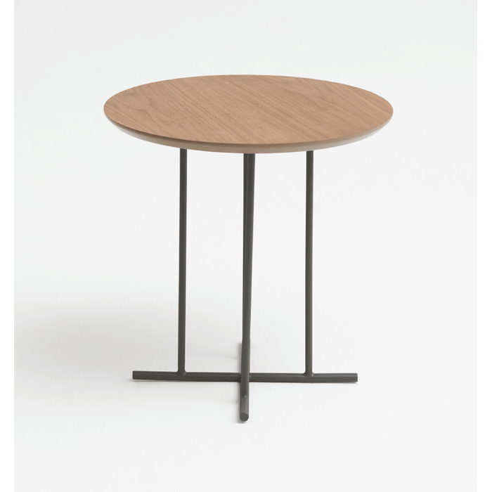 Mesa de Apoio X - Tampo Nogueira Natural - Base Aço Carbono - Altura 50cm