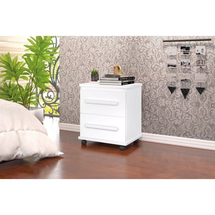 A Mesa de cabeceira é Ideal para organizar e decorar seu ambiente, possui 2 gavetas com corrediças metálicas, possui Tambem 4 rodizios (rodinhas) que dão charme ao produto e facilita a movimentação do móvel na hora da limpeza.
