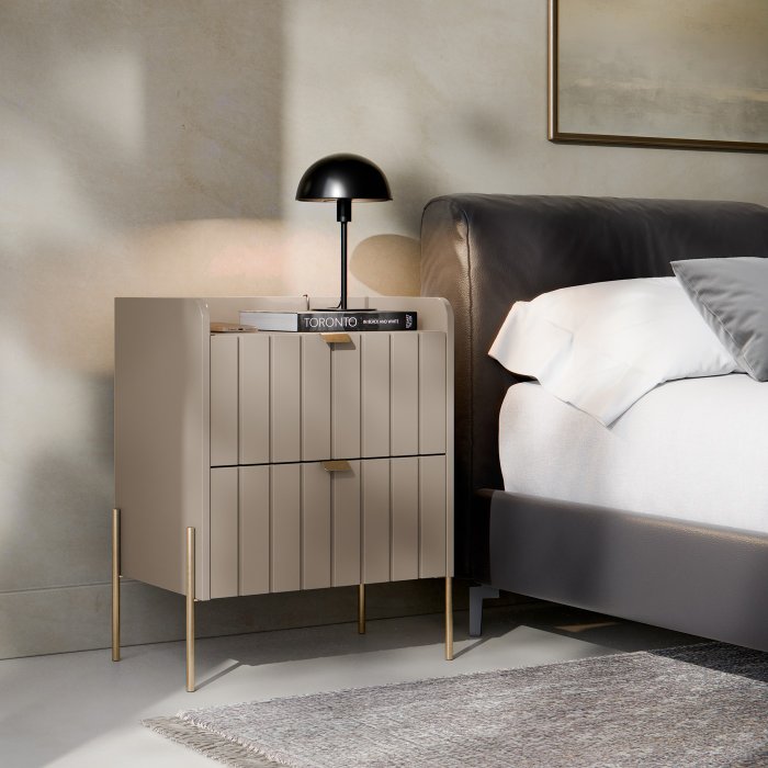 Mesa de Cabeceira Moderna Pequena com Gavetas Madeira Mdf Moriah 45cm Conect com Pés e Puxadores Aço