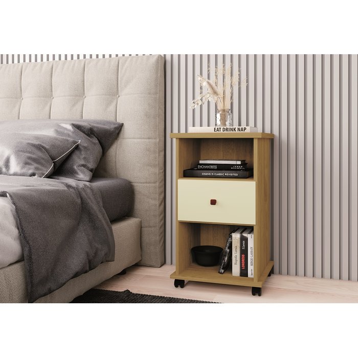 Mesa de Cabeceira Otto Mel/perola com Rodizio