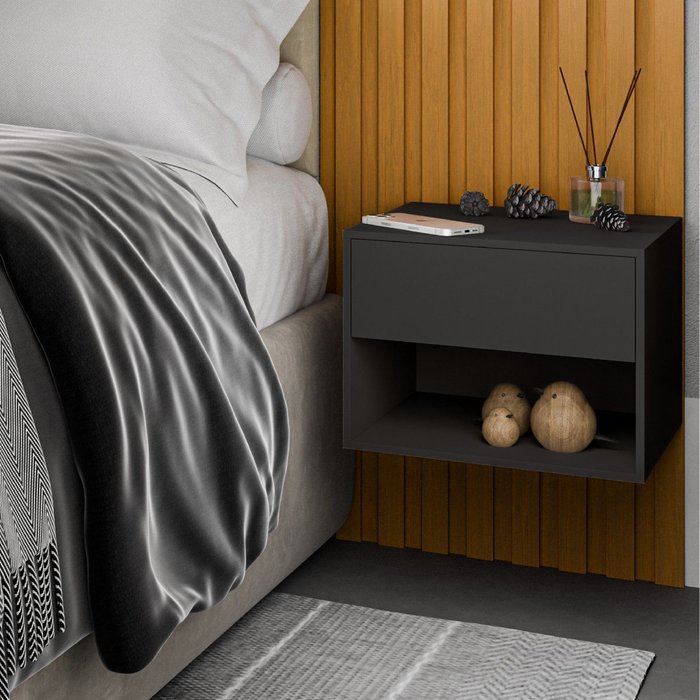 A Mesa de Cabeceira Suspensa, é uma peça que eleva o estilo e funcionalidade do seu quarto para um novo patamar!
