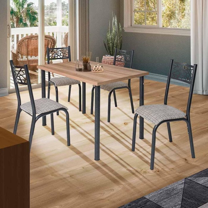 Mesa de Jantar com 4 Cadeiras em Aço Preto Carvalho com Estofado Manteiga Polob Shop Jm
