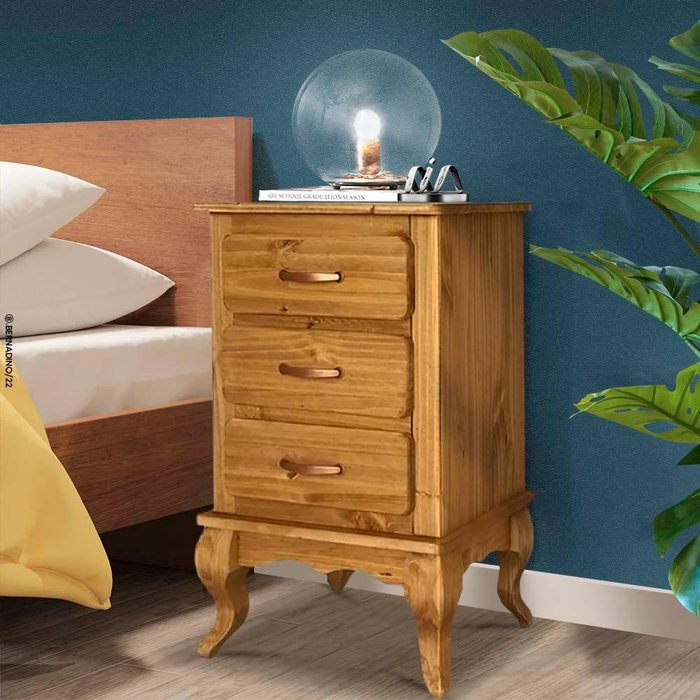 Mesinha para Cabeceira Grande 3 Gavetas Madeira Maciça Mel Jm Móveis