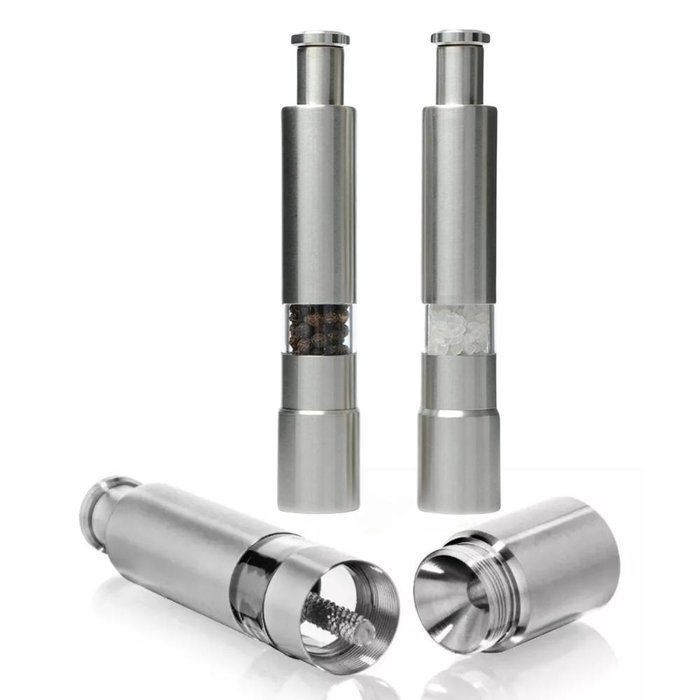 Moedor de Sal Pimenta Manual de Apertar Pratico para Temperar Aço Inox Prata
