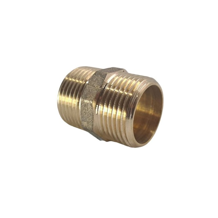 Niple Sextavado Latão Rosca 1" x 1" - Amarelo
