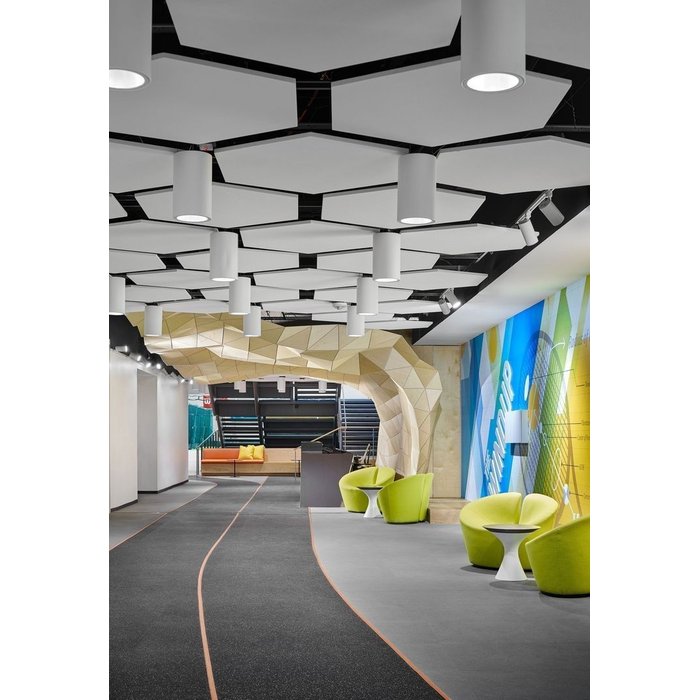 A Nuvem Acústica Hexagonal BL Acoustic 9101 é uma excelente opção para quem busca a funcionalidade do tratamento acústico e estética. O painel é feito em estrutura de MDF com 50mm de espessura, enchimento em lã pet - um produto feito a partir de materiais recicláveis, e acabamento em tecido Poliéster 600.