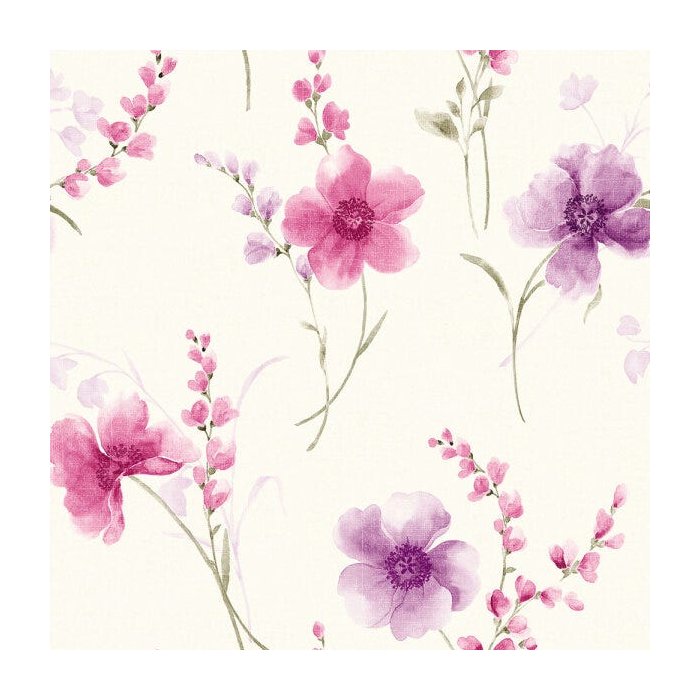 Papel de Parede Floral Com Ramos em Rosa e Roxo Para Quartos e Sala