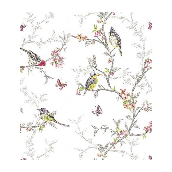 Papel De Parede Para Sala Com Desenhos De Passarinhos Fundo Branco Branco
