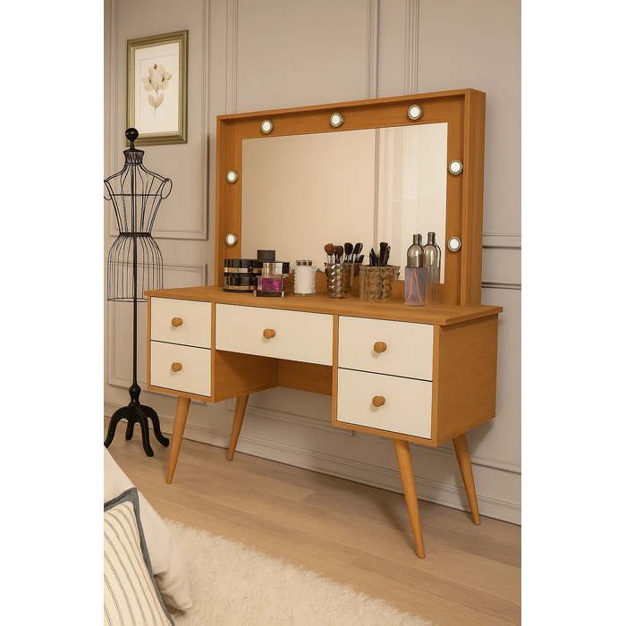 Penteadeira Camarim Anaisa Luz de Led e Espelho -novas Cores: Nature / Off White Nature / Off White