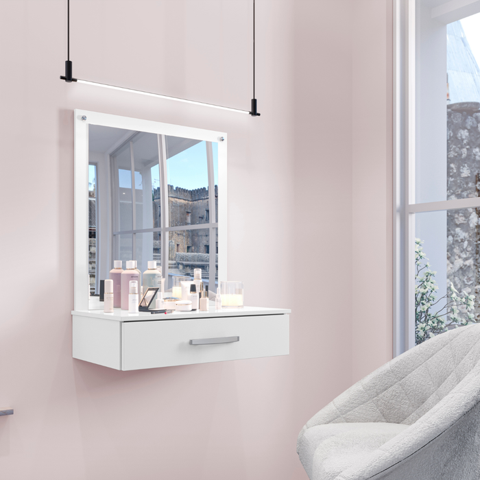 Transforme seu espaço com esta linda penteadeira suspensa, perfeita para quem busca praticidade e estilo! Compacta e moderna, ela conta com uma gaveta para guardar seus acessórios e um espelho que garante praticidade na hora de se arrumar. Ideal para otimizar seu ambiente, ela traz charme e funcionalidade ao seu quarto ou closet. Aproveite essa oportunidade de deixar seu espaço mais bonito e organizado com uma peça que une design e praticidade!