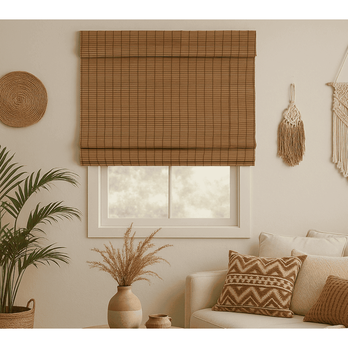 As Persianas Romanas de Bambu Block são práticas e modernas, devido as tramas de bambu serem intercaladas elas oferecem alta de retenção de luminosidade.