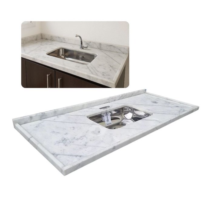 01 Pia de mármore branco com cuba em inox N2