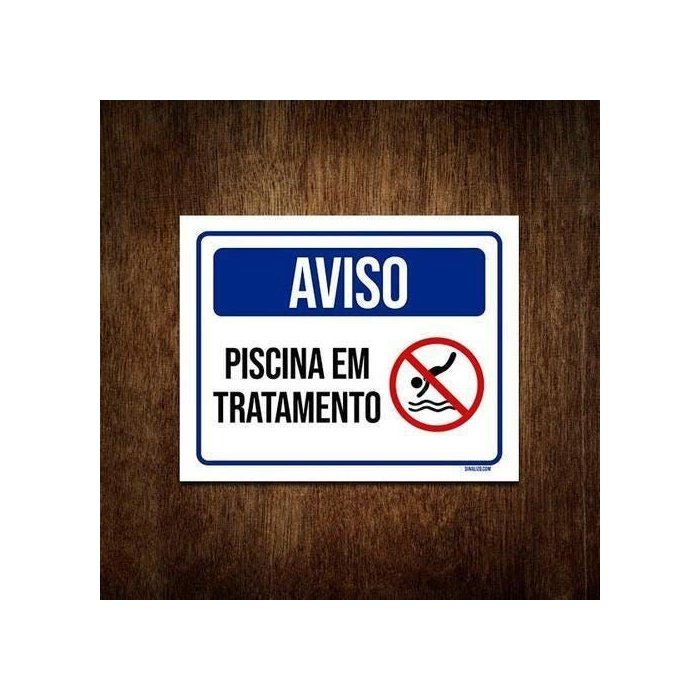 Placa de Sinalização Aviso Piscina em Tratamento 36x46