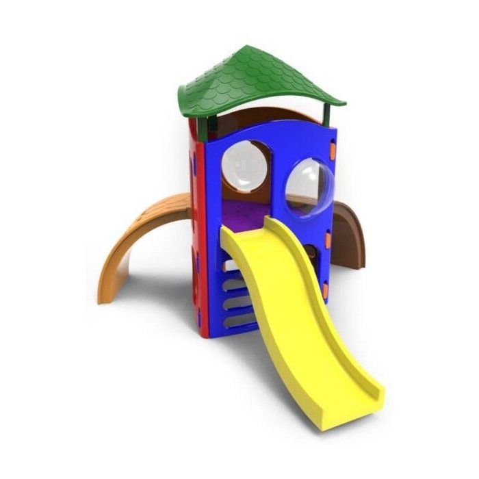 Um playground formado por uma torre e três faces, com plataforma triangular, garantindo maior estabilidade e segurança. As laterais possuem suporte para conexões e com design para facilitar a visualização das crianças em seu interior. Pode acoplar bolha transparente, vendida separadamente. Foi projetado para ser montado sem a necessidade de parafusos, devido seus encaixes de alta precisão. Pode ser utilizado para área externa ou interna.
