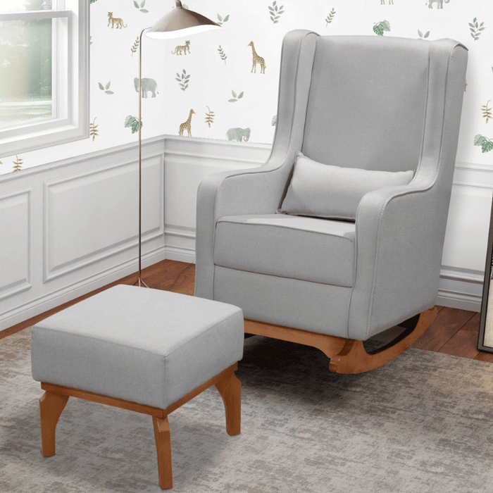 Poltrona de Amamentação Acquila Retro com Balanço e Puff:linho Cinza 111380