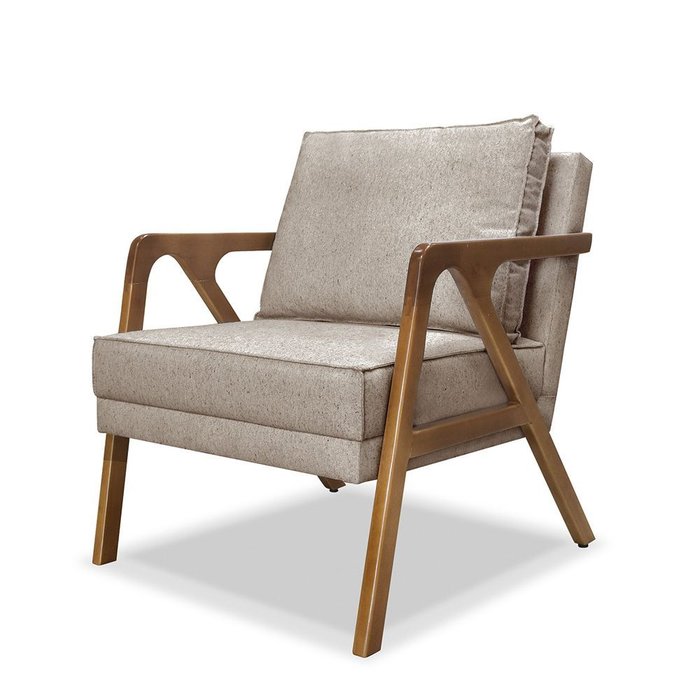 Poltrona Decorativa Base de Madeira Monalisa Luxo Linho Rústico Areia - Loja Sheep Areia