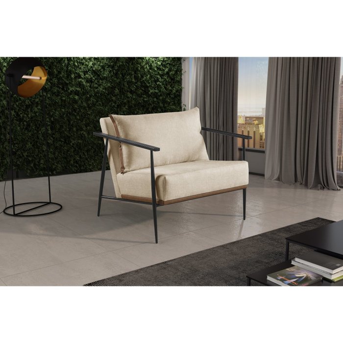 Poltrona em Linho 70cm com Estrutura de Metal Ferco Bege Claro