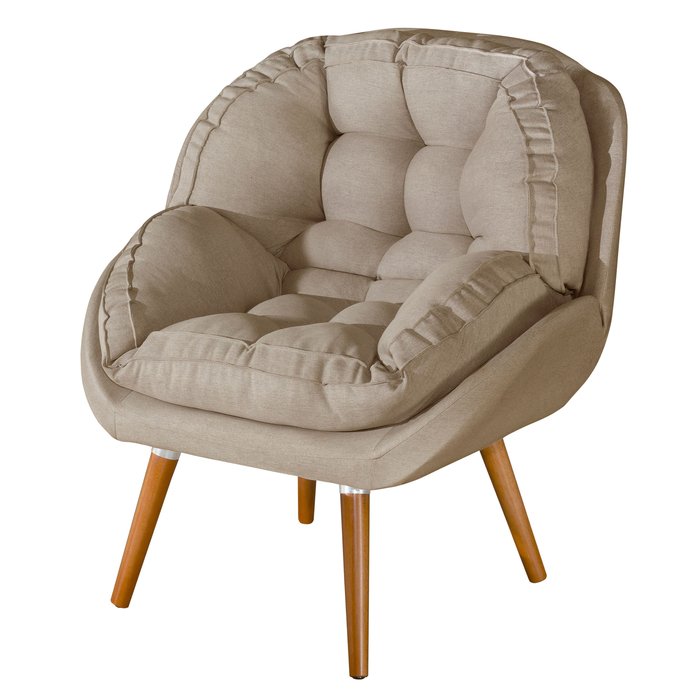 Poltrona Linho Luxo/conforto Premium Pés Palito Madeira:bege Linho Bege Linho