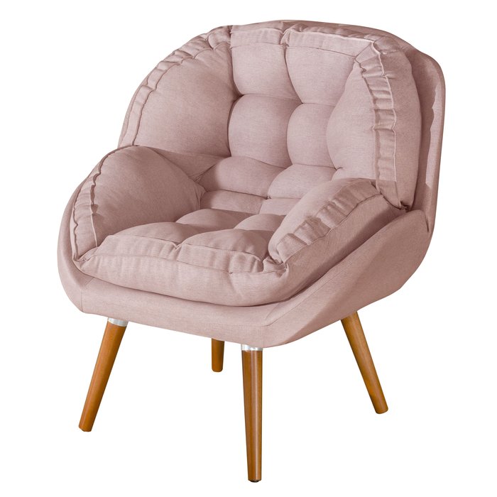 Poltrona Linho Luxo/conforto Premium Pés Palito Madeira:rose Linho Rose Linho