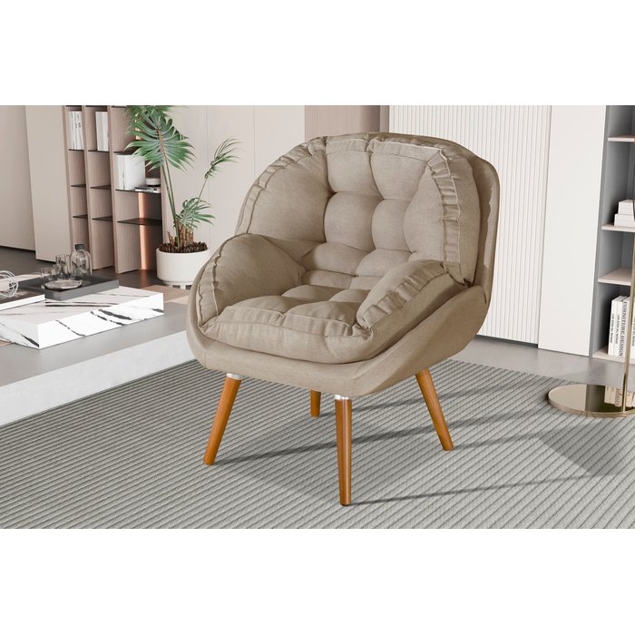Poltrona Linho Sênior Luxuosa com Pé em Madeira Maciça:linho Bege