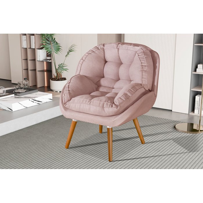 Poltrona Linho Sênior Luxuosa com Pé em Madeira Maciça:linho Rose