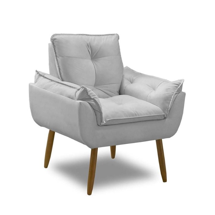 Poltrona para Sala Decorativa Opala Pés Madeira Suede Cinza Claro Império Decor
