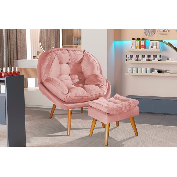 Poltrona Sênior + Puf Rose para Salão de Beleza
