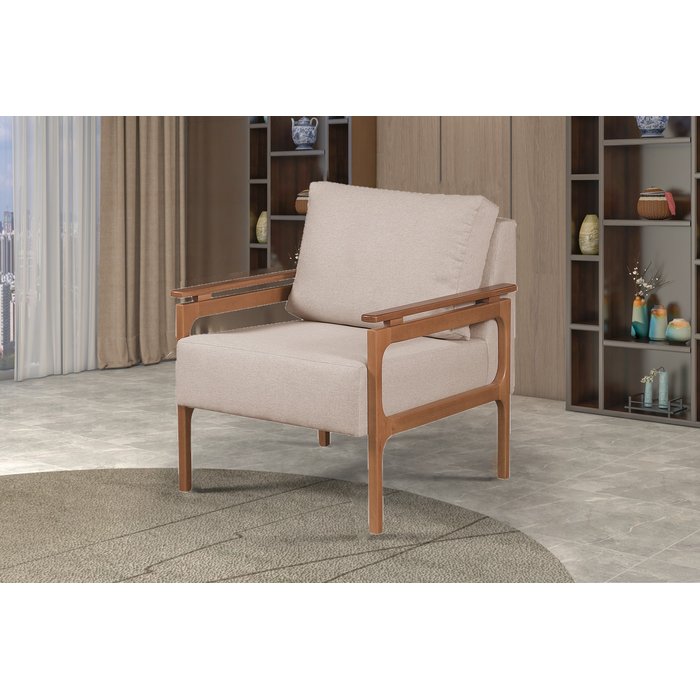 Poltrona Yasmim Braço de Madeira Cor:linho Bege