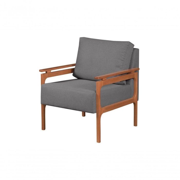 Poltrona Yasmim Braço de Madeira Cor:linho Cinza Escuro linho Cinza Escuro