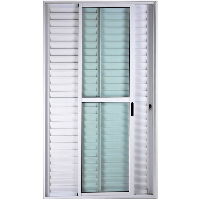 Porta de Alumínio de Correr Balcão 3 Folhas 2,10 x 1,50 Linha 25 Com Chave Cor Branco