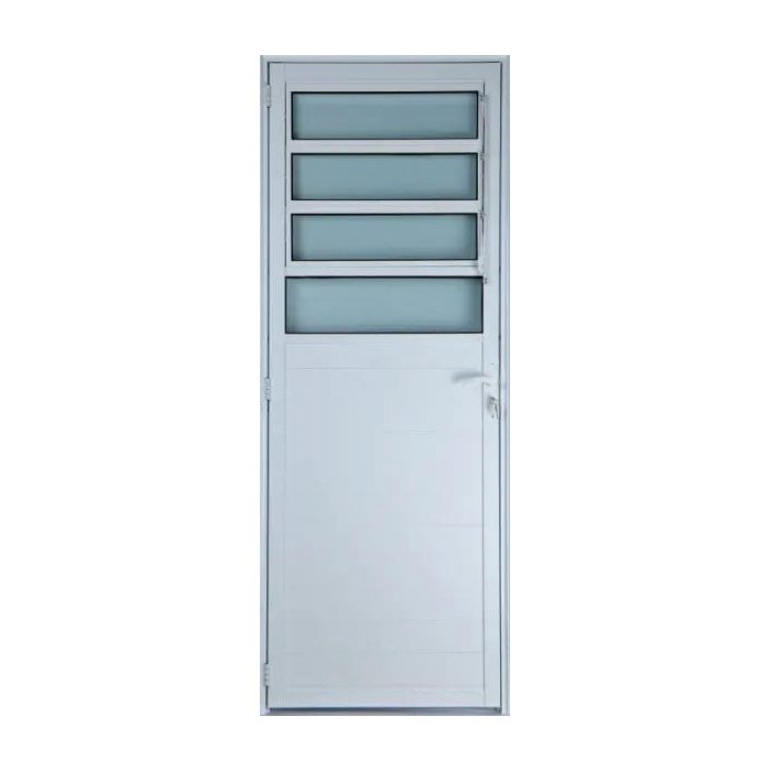Portas de Alumínio em Geral As Portas de Alumínio são a opção mais inovadora para sua casa, com Design Moderno e Prático são ótimas para utilizar nos mais diversos Locais como: casas, apartamentos, comércios, indústrias, fazendas, chácaras etc... Produto com Alta Durabilidade que proporciona economia de espaço e ganho de área utilizável. Portas de Alumínio também são utilizadas para dividir ambientes como: Salas, cozinhas, lavanderias, área de serviço, banheiro, sacada, varanda, escritórios, sótão, garagem etc... Com quase Nulo Custo de Manutenção e Pinturas Especiais que garantem o Brilho por muito mais tempo que outros materiais fazem das Portas de Alumínio uma ótima opção de Qualidade e Custo Benefício. Especificações Técnicas Portas de Alumínio de Abrir (Giro). Altura Total do Produto : 210 centímetros. Largura Total do Produto: 80 centímetros