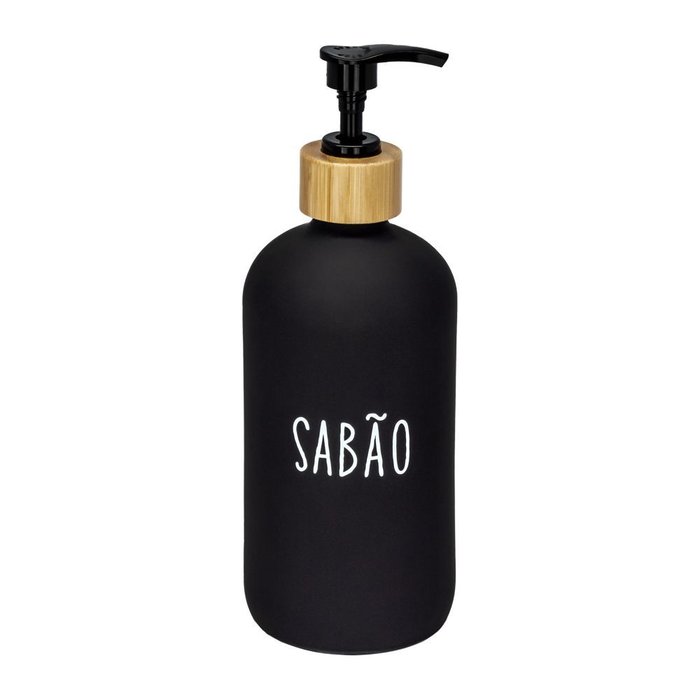 Porta Sabonete Líquido Banheiro Doha 500ml Preto Hauskraft Preto, Natural