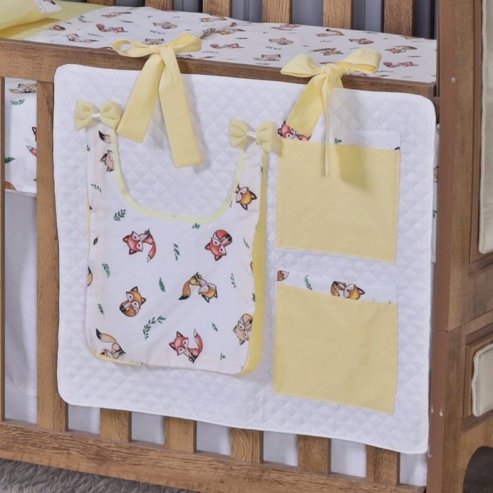 Porta Treco e Fralda Organizador Quarto de Bebê Menino Menina 1 Peça com Laço:raposa Amarelo Raposa amarelo