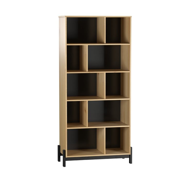 Imagine uma prateleira de biblioteca com dez nichos, projetada para tornar a organização dos seus livros e itens de decoração mais prática e elegante.