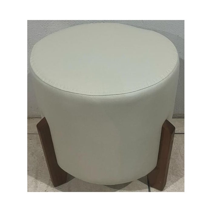 Com seus pés em madeira e revestimento em corino na cor bege, este puff é uma adição charmosa a qualquer espaço.