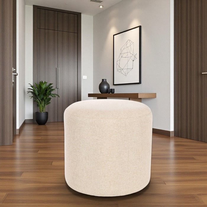Puff Perse Decorativo Tecido Linho Banqueta Puffe Redondo