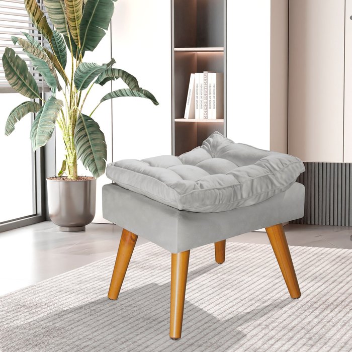 Puff Sênior Luxuoso Banco Apoio Pés Almofadado Penteadeira:cinza Suede