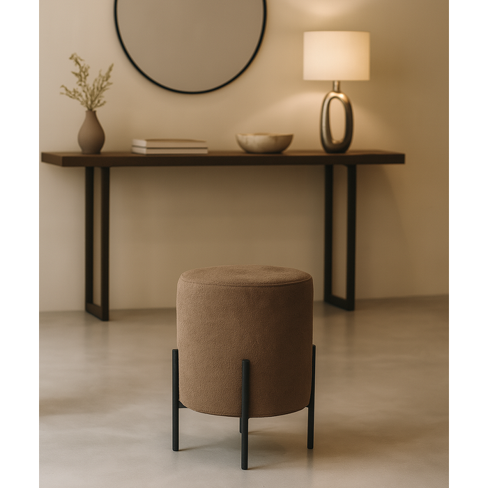 Puff Siena Decorativo Tecido Boucle Banqueta Redondo Pés de Metal Chocolate