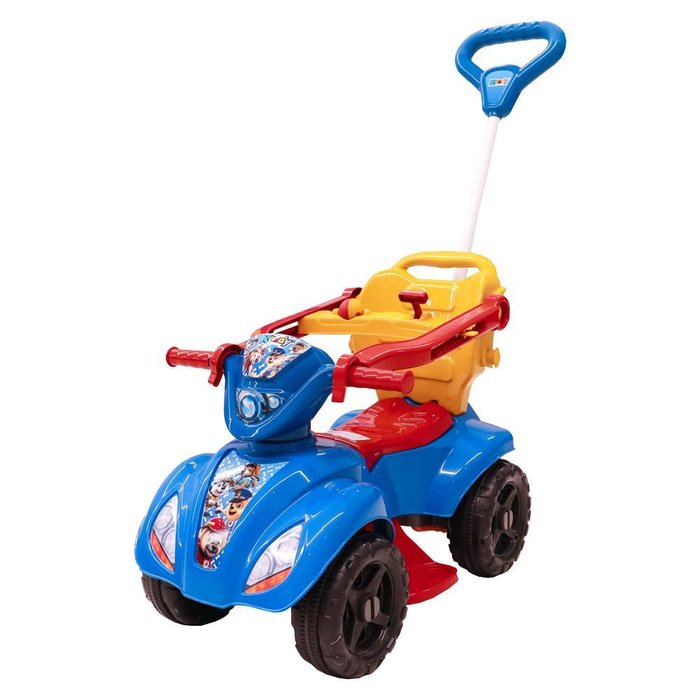 Mais Informações | Contém: 1 Quadriciclo 1 Haste de ferro removível c/ suporte para bolsa 1 Protetor de corpo removível 1 Peças interativas 1 Suporte para pés 1 Assento anatômico Peso máximo suportado: 30 kg |