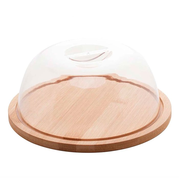 Queijeira em Bambu e Tampa Translúcida Decorafast Natural e Translúcido