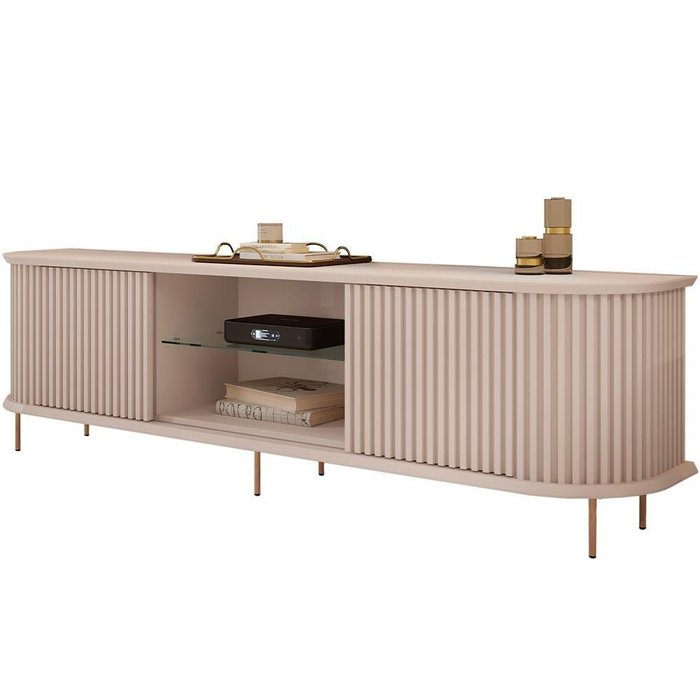 O design orgânico com cantos curvos harmoniza com as portas ripadas e os pés metálicos, trazendo um toque de contemporaneidade e seguindo as últimas tendências de decoração. Mais que o quesito estético, esse rack para TV ainda proporciona funcionalidade ímpar, já possui duas portas deslizantes para armazenar objetos, além de dois nichos para aparelhos eletrônicos e prateleira de vidro. Para completar o visual, o passa-fios facilita a organização dos cabos e mantém a bancada sempre em ordem. Adicione um toque de sofisticação a sua sala de estar com o rack bancada Atlantis. Você vai se surpreender. Dimensões do produto (L x A x P)