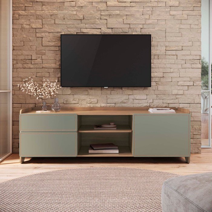 Rack para Tv 75 Polegadas 100% Mdf 58x182cm Flea Louro Freijó Grann/Verde