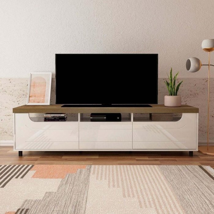 Rack para TV até 75 Polegadas 200cm 2 Portas 1 Gaveta Multimóveis CR45325 Pinho/Off White