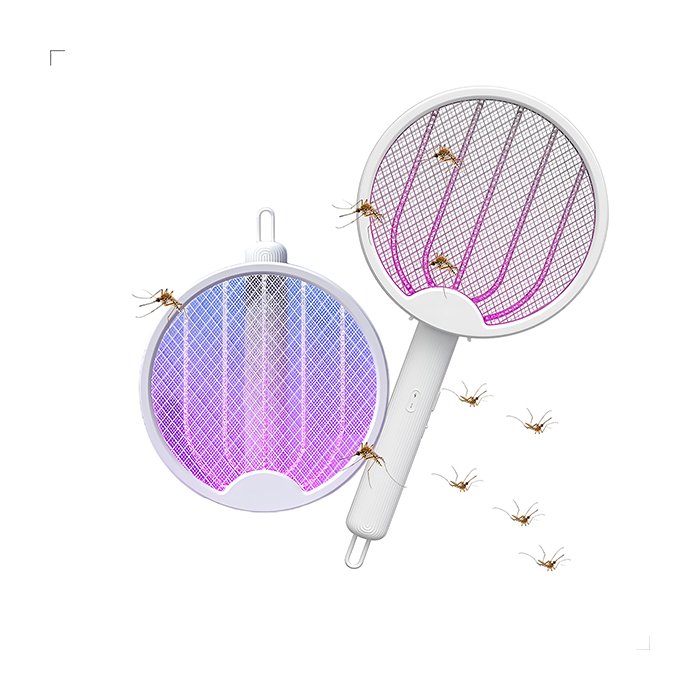 Raquete Elétrica Anti Mosquitos 4 em 1 Funções Manual Portátil e Modo Uv Inteligente Branco