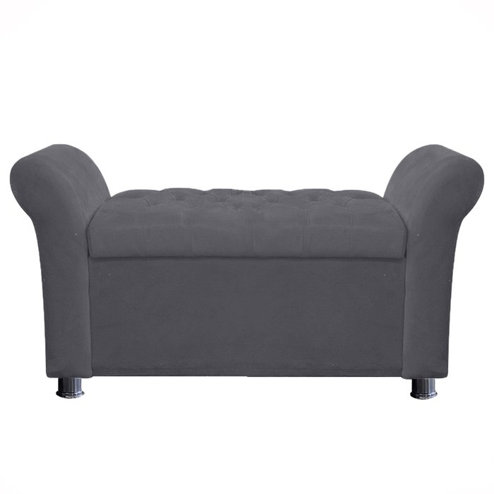 Recamier Baú Sapateira Louis 160x Cama Queen Size Suede Cinza - Majú Deor