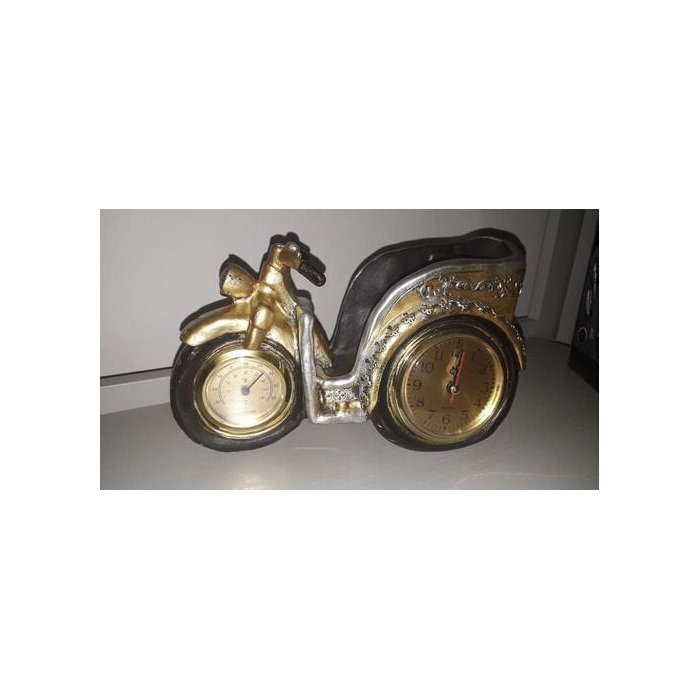 Relógio E Termômetro De Mesa Moto Dourado preto e dourado