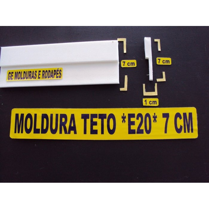 Modelo e20 possui 7cm de largura x 1cm de espessura na parte superior e 5 mm na parte inferior, valor por 5 metros! Cm = centímetros mm= milímetros mt/mts= metros nosso material é produzido em eva (borracha sintética), todos nossos produtos são fabricados com uma fita dupla face em toda parte posterior do produto. Produzimos esse modelo em rolos contínuos de até 20 metros. Aconselhamos em áreas externas, áreas com umidade / banheiro, parede com textura, parede de drywall, papel de parede, parede de cimento queimado, parede de grafiato, parede pintado com tinta semi-brilho, parede pintadas com tintas laváveis (que repelem sujeiras, riscos de caneta, etc.), moldura de arco, molduras de espelho, solicitamos que passe uma cola de contato/ cola de sapateiro, na superfície de aplicação, espere 10 minutos e vem fazendo a aplicação do material para ter mais aderência da cola, não tem necessidade de passar cola no material somente na superfície que será aplicado. Caso preferir, nosso material pode ser pintado com qualquer tipo de tinta (principalmente tintas à base de água), após instalado, pois caso pinte antes a tinta irá craquelar. A instalação é limpa e prática, caso o material suje, limpar com um pano com álcool ou um pano com multiuso, até mesmo passar a parte amarela (mais macia) da esponja com detergente e tirar o excesso com um pano seco.