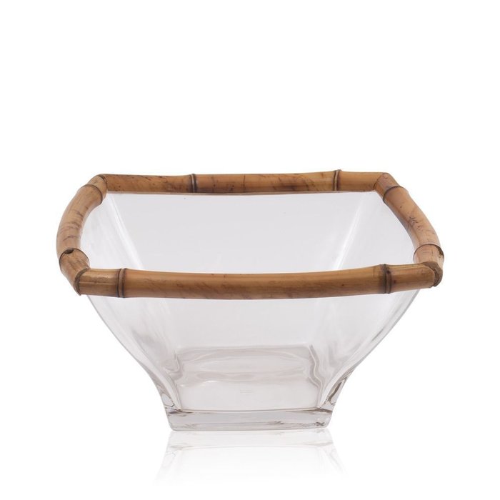 Saladeira Vidro C/ Borda Bambu Tigrado